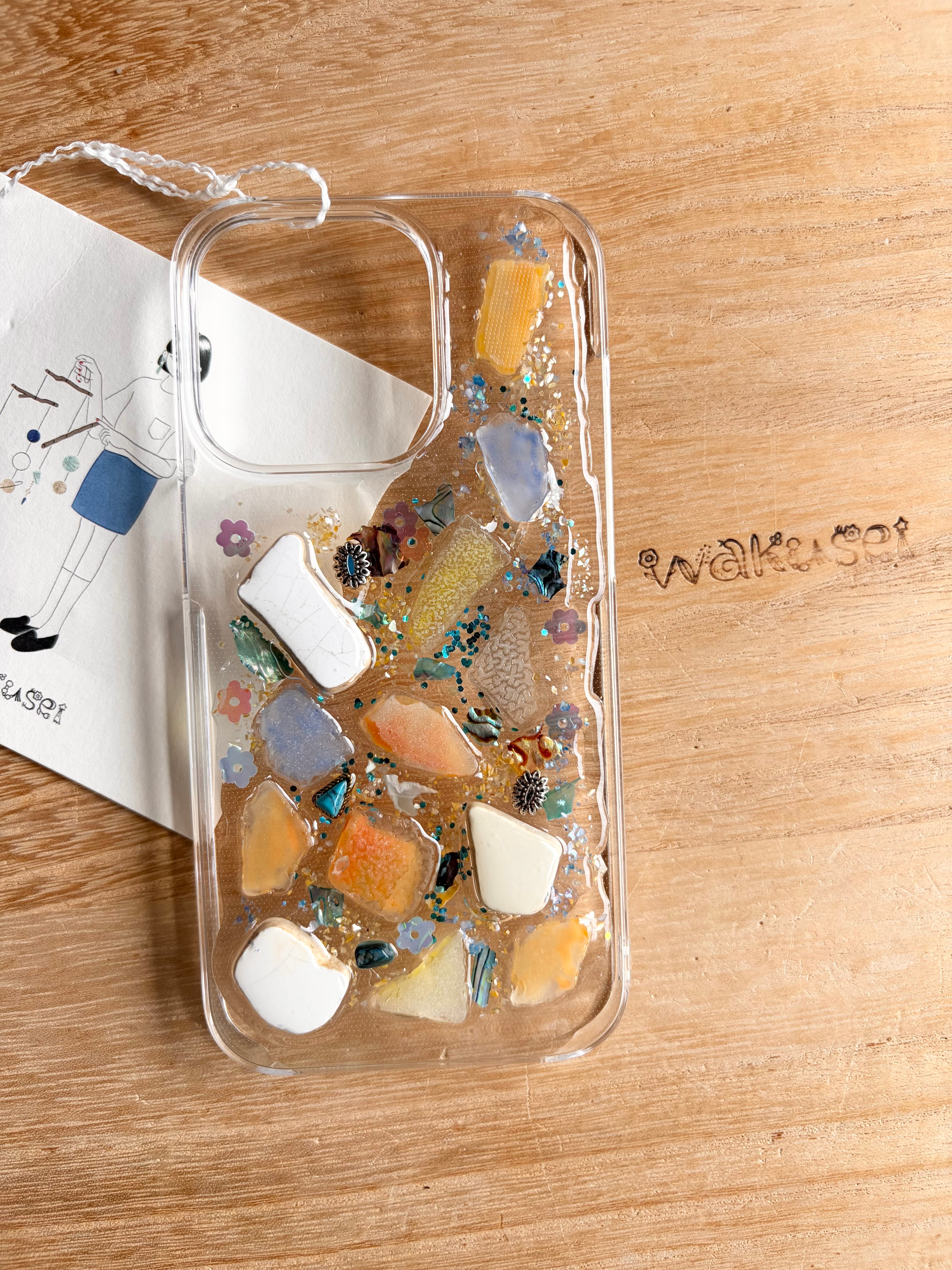 琵琶湖のビーチグラスをつかったスマホケースです。
